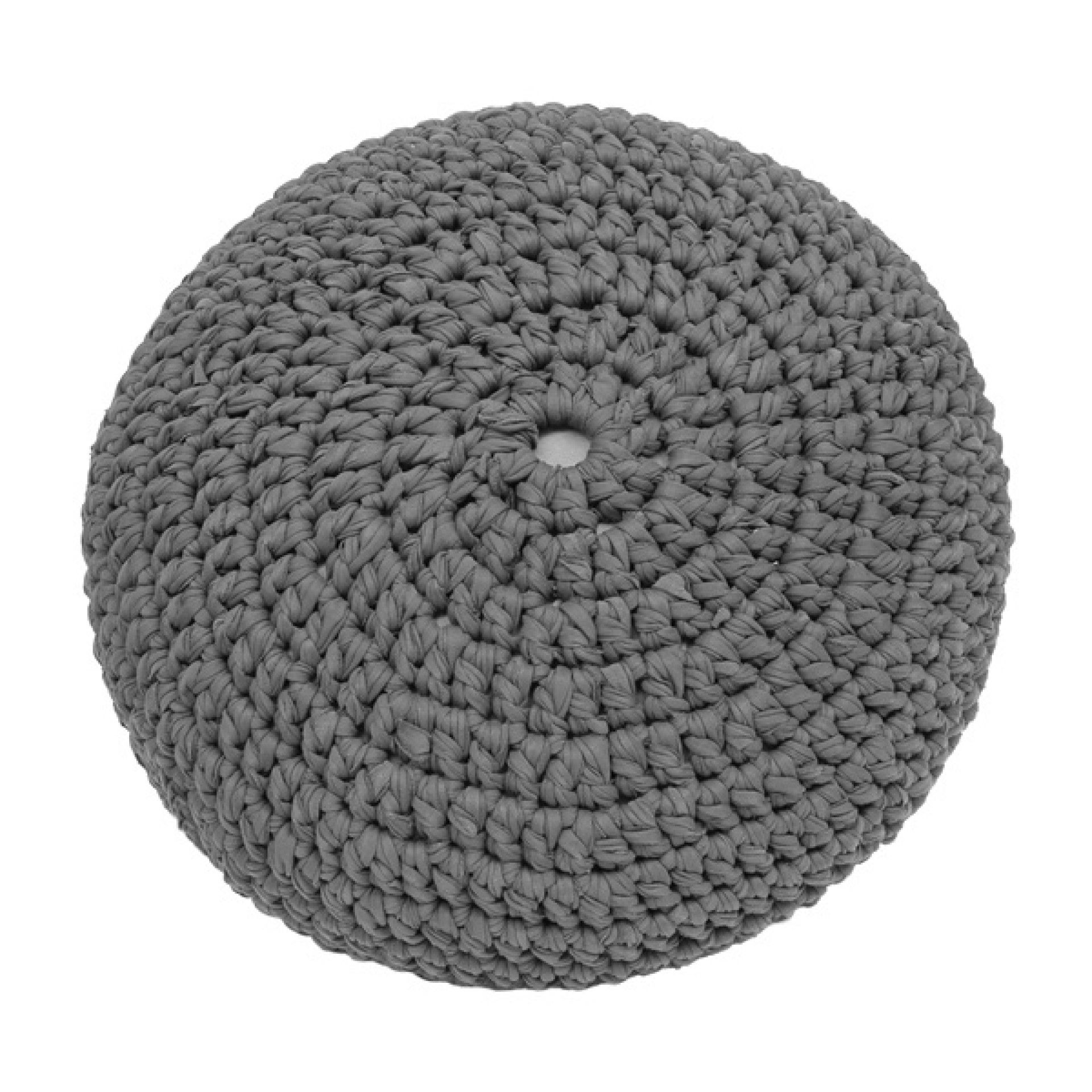 Der Pouf hat einen Durchmesser von 65 Zentimeter Zentimetern und eine Höhe von 35 Zentimetern.