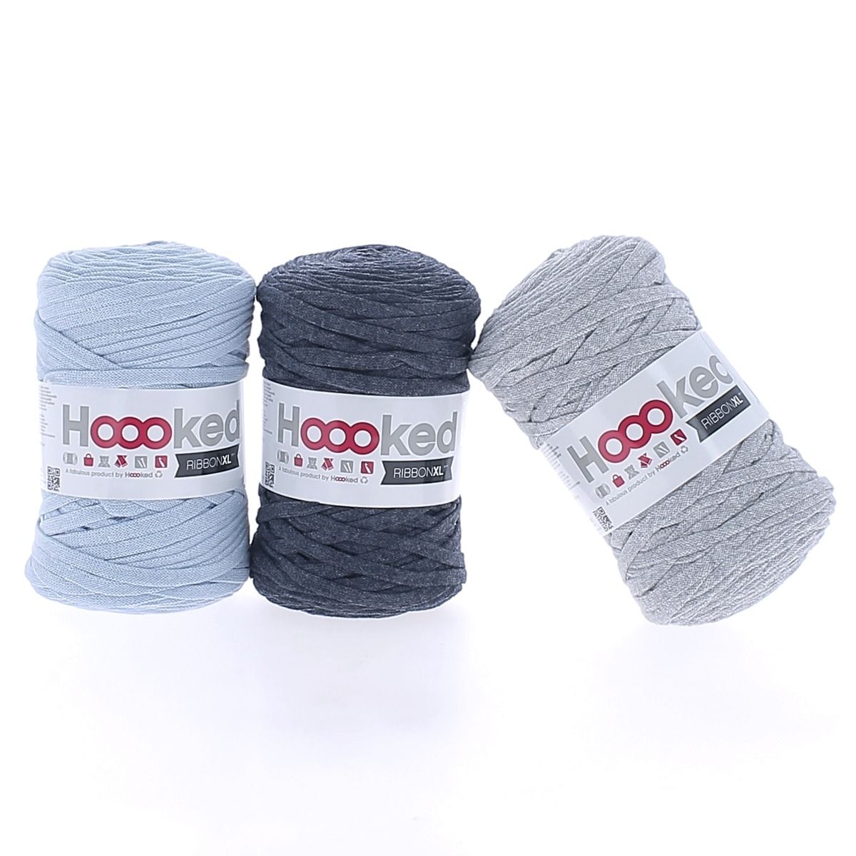 - 1 Knäuel RibbonXL - Powder Blue - 1 Knäuel RibbonXL - Riverside Jeans - 1 Knäuel RibbonXL - Silver Grey